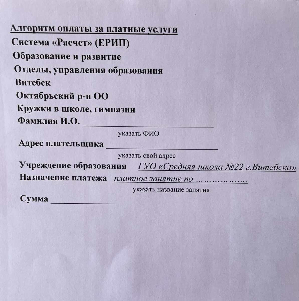 ПРЕЙСКУРАНТ ЦЕН НА УСЛУГИ, ОКАЗЫВАЕМЫЕ УЧРЕЖДЕНИЯМИ ОТДЕЛА ПО ОБРАЗОВАНИЮ АДМИНИСТРАЦИИ ОКТЯБРЬСКОГО РАЙОНА г. ВИТЕБСКА