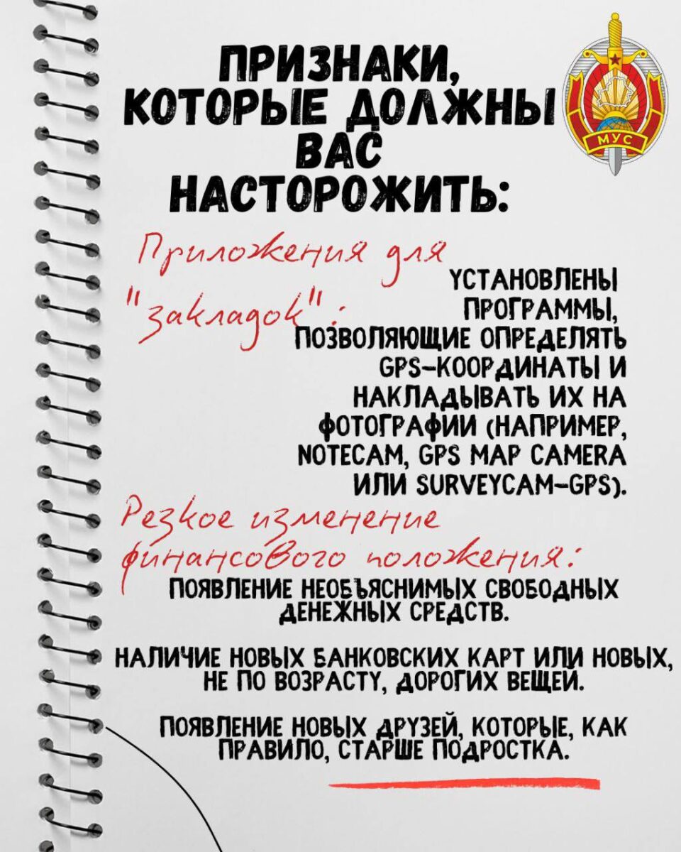 ⚠️ Уважаемые родители, обращайте внимание, чем в свободное время занимаются ваши дети, с кем они общаются, в том числе в интернете. Через обещания «легких денег» вашего ребенка могут вовлечь в распространение наркотиков. При любых подозрениях поговорите с ребенком и немедленно обратитесь в милицию.