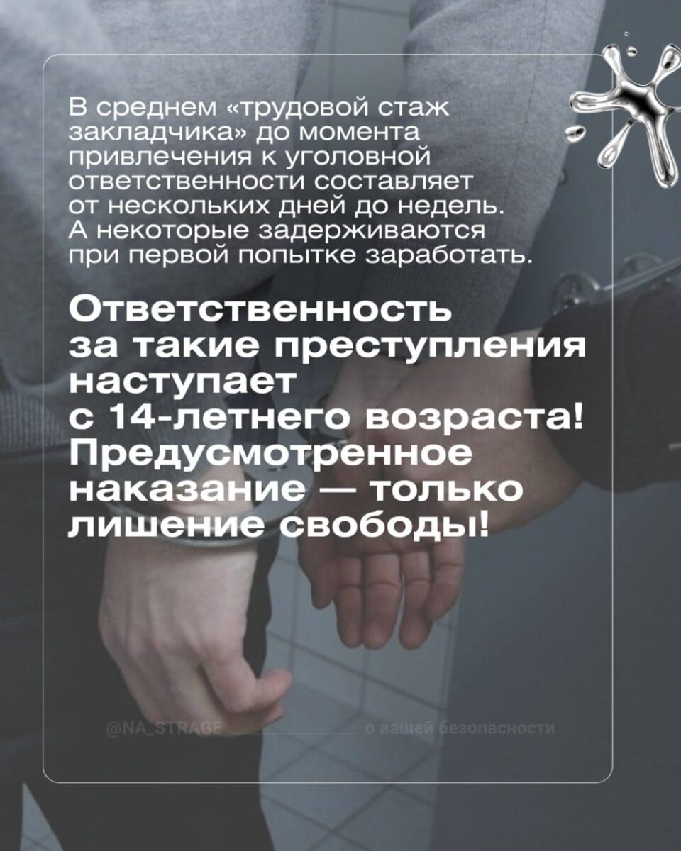 ❗️Те, кто оступился, потом жалеют об этом. Упущены время и возможности плюс подорвано здоровье… А за закладки – ещё и лишение свободы!